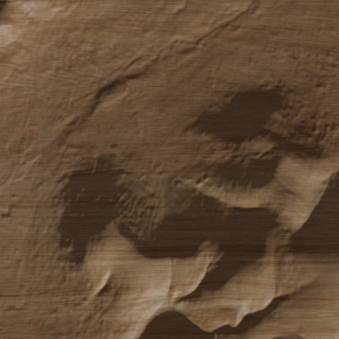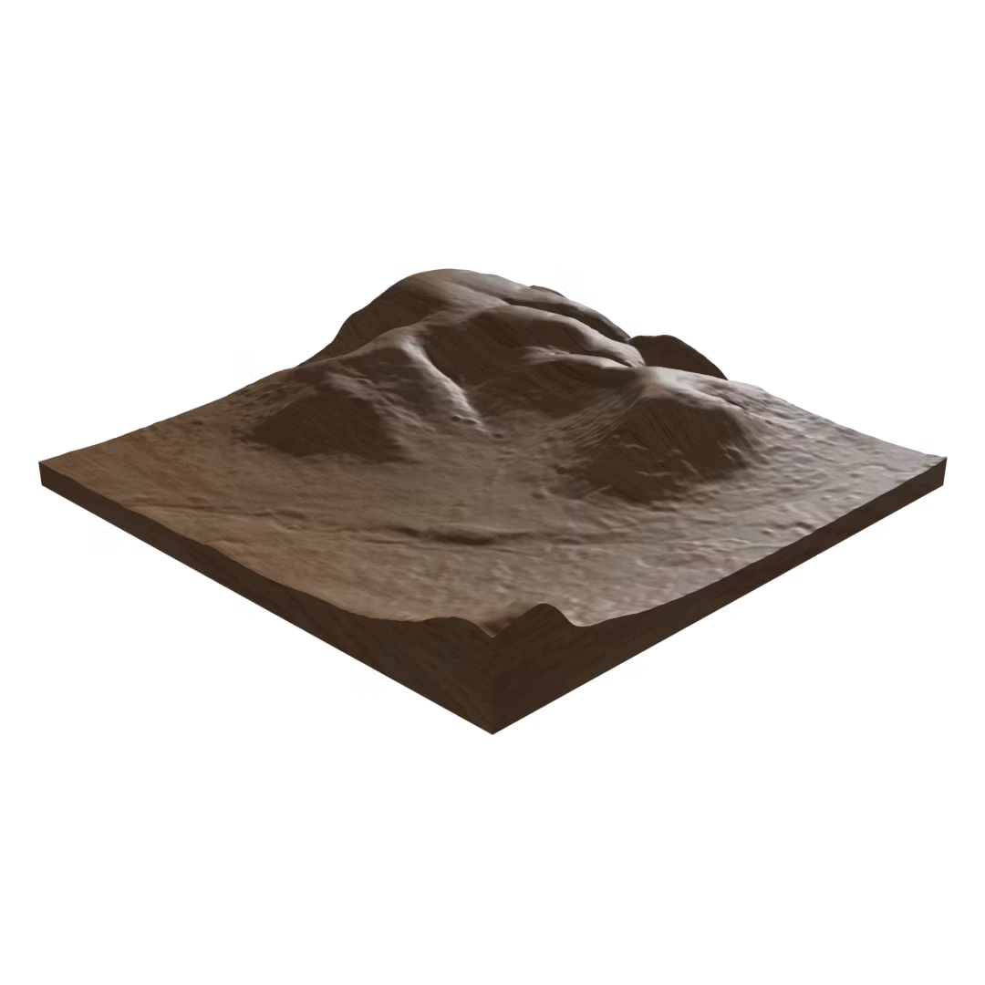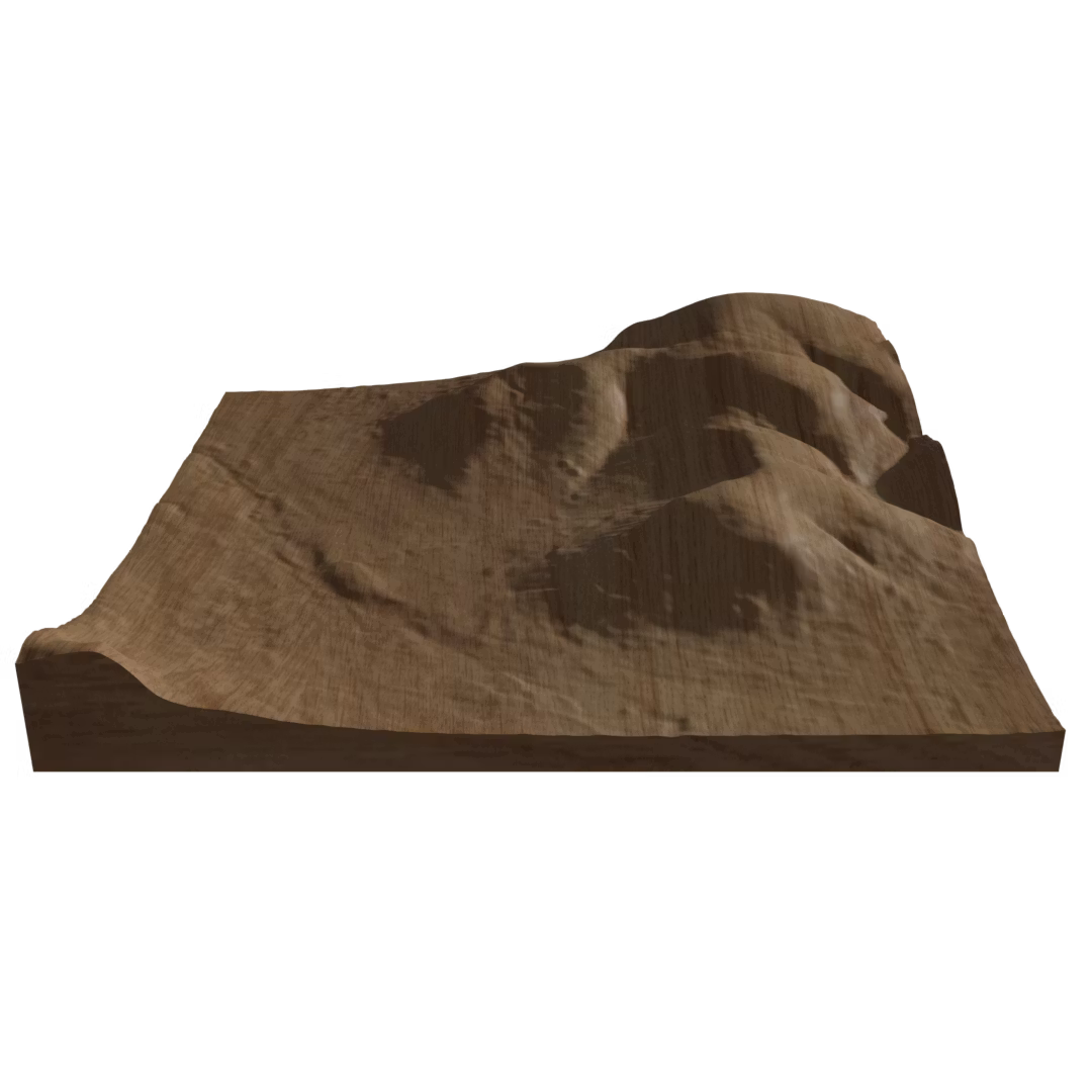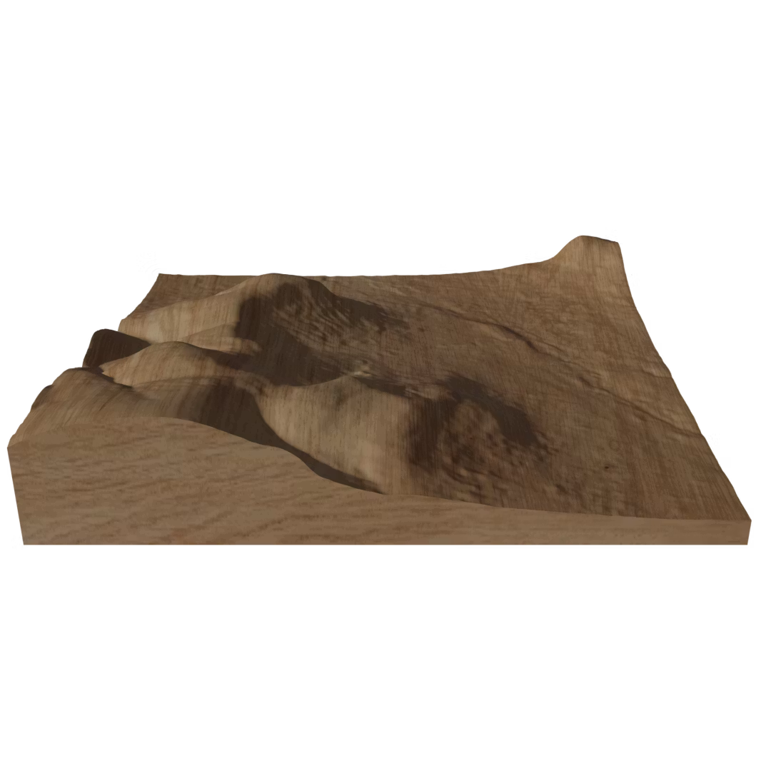 Tredimensionell topografisk karta i trä över Stöten i Sälen.