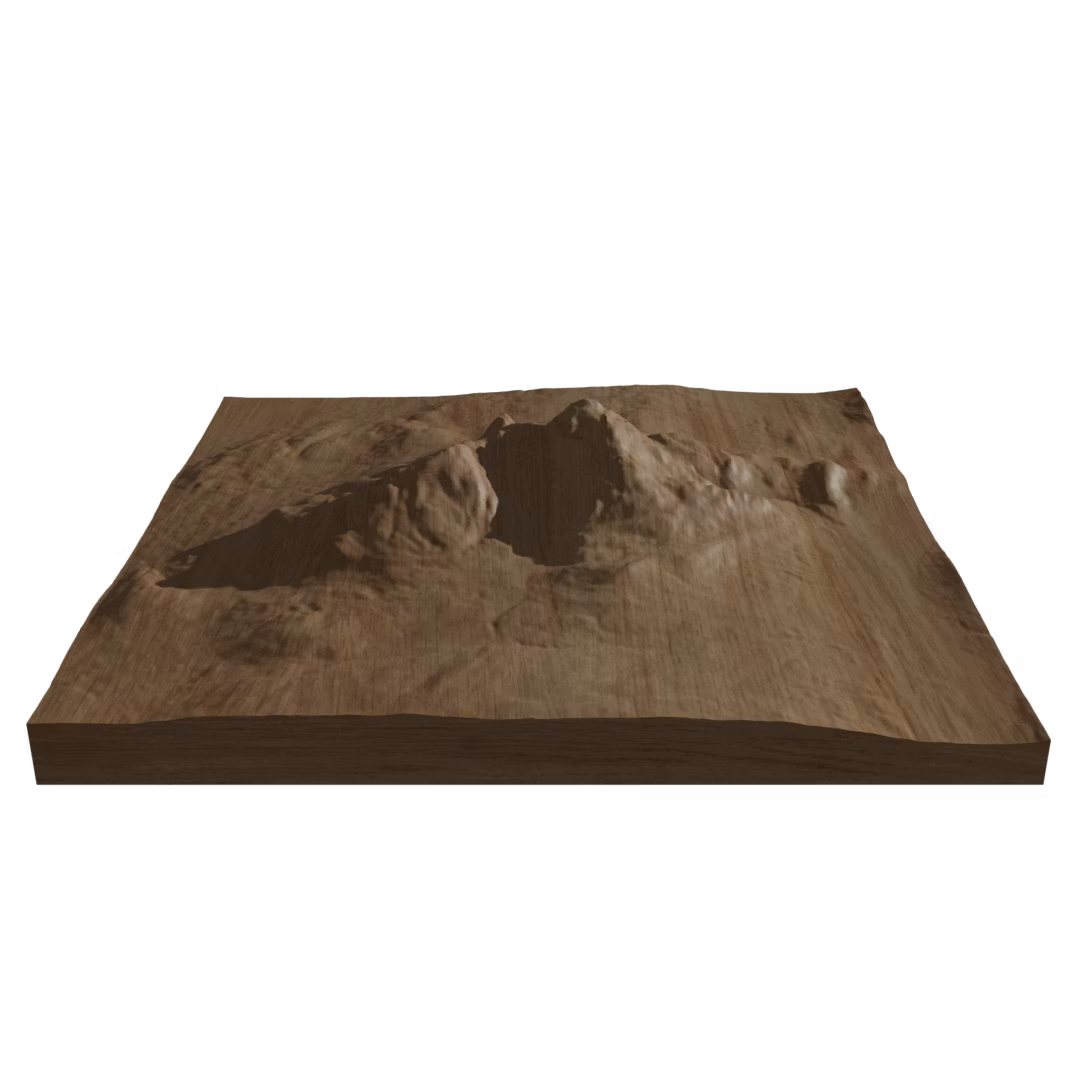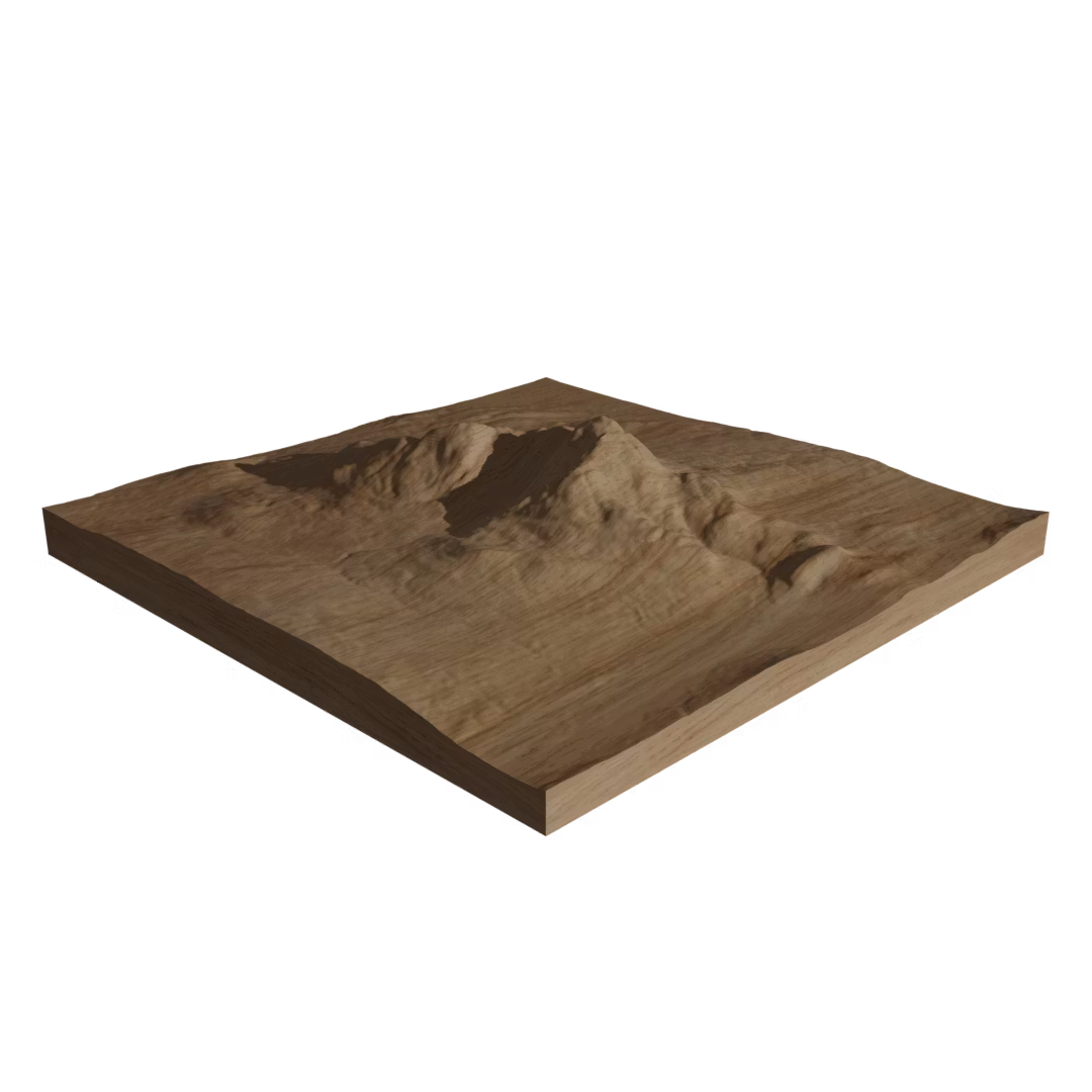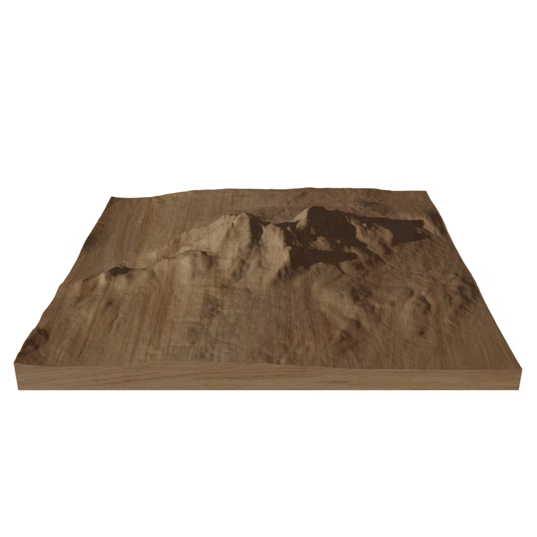 Tredimensionell topografisk karta i trä över Åre fjäll.