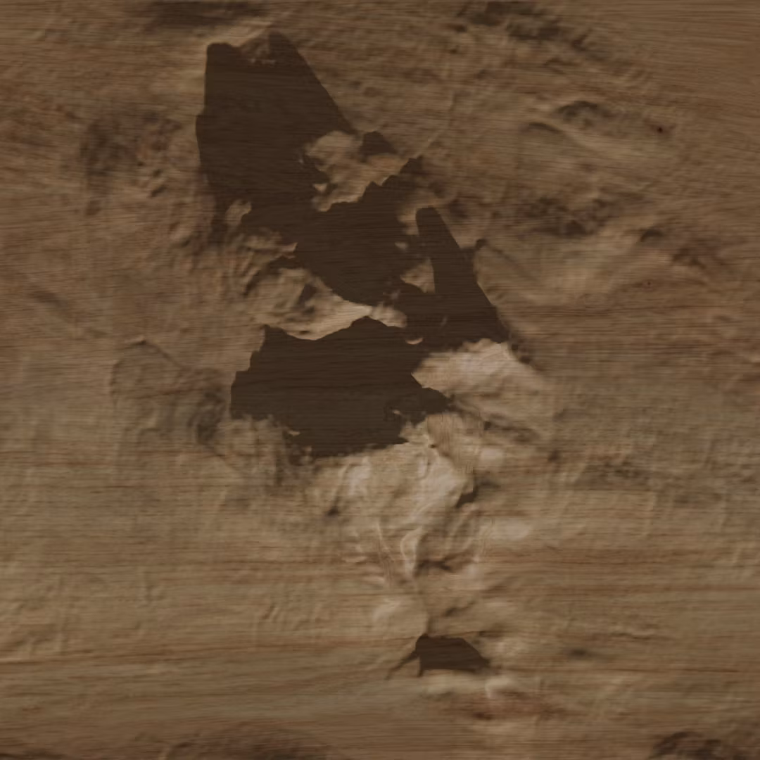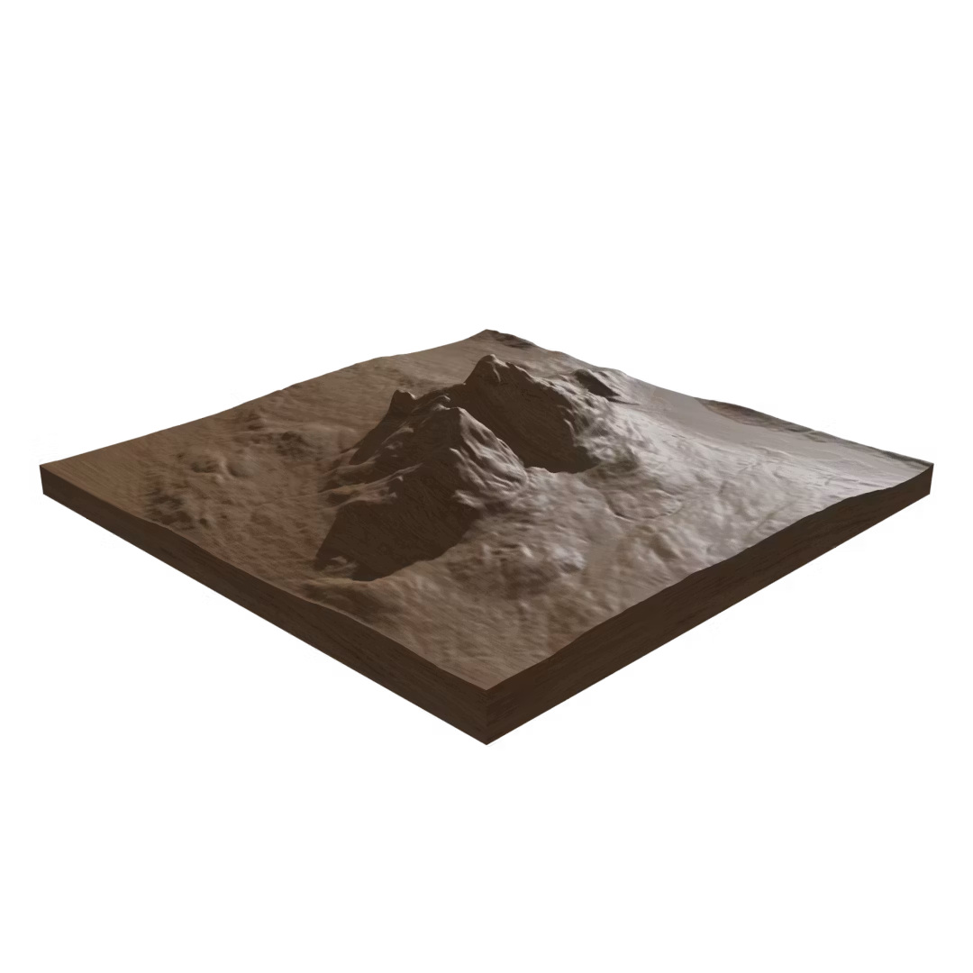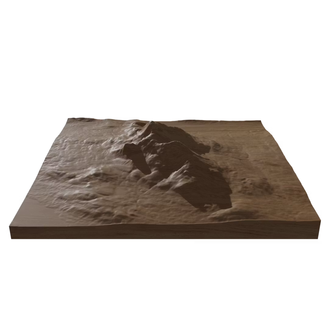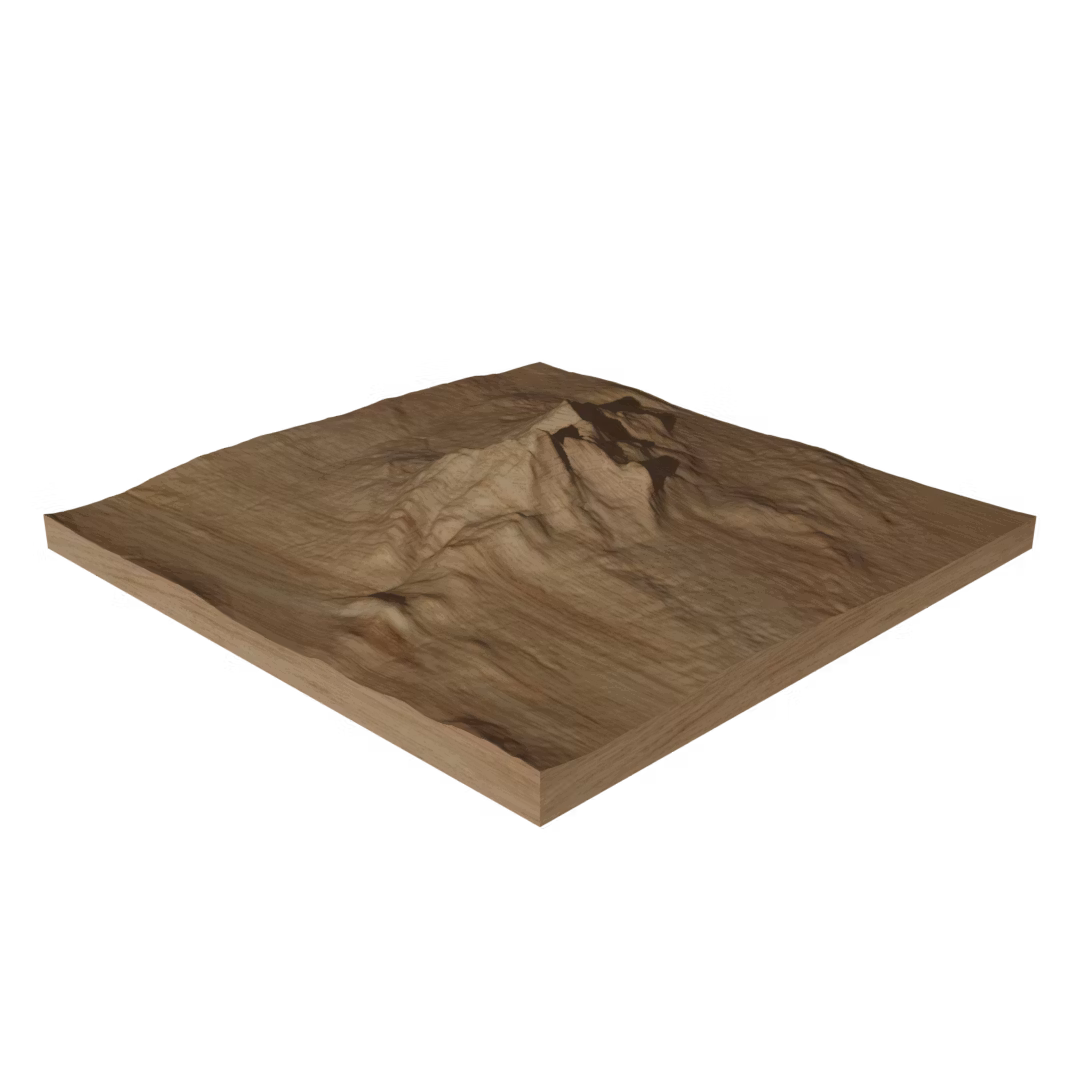 Tredimensionell topografisk karta i trä över Åre fjäll.