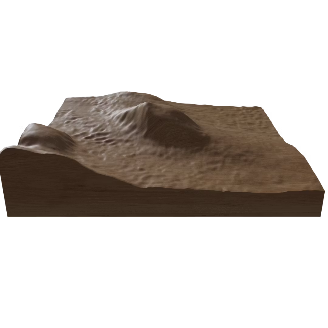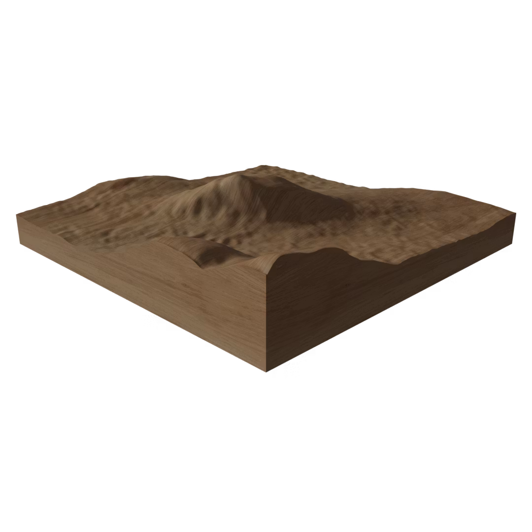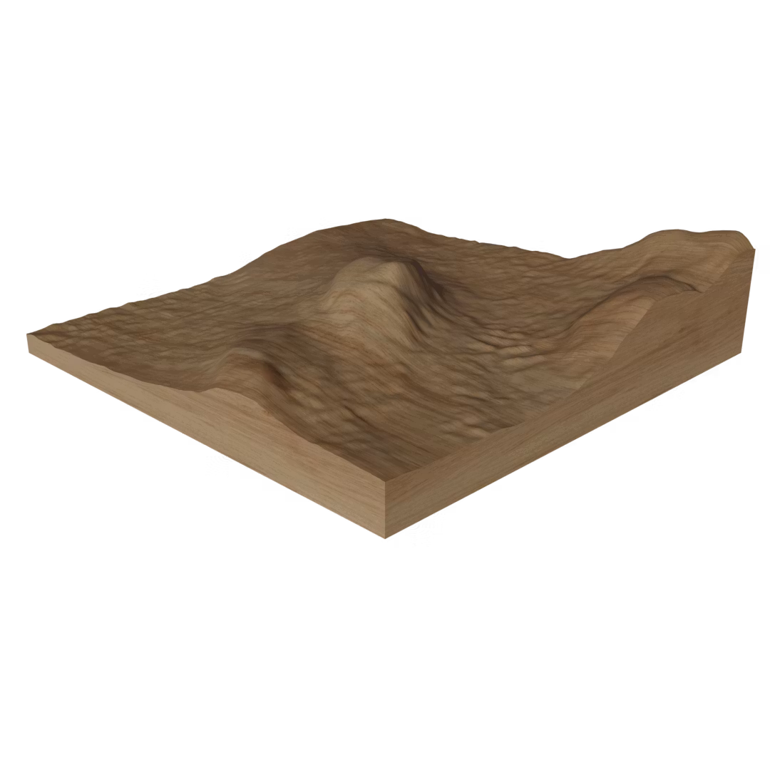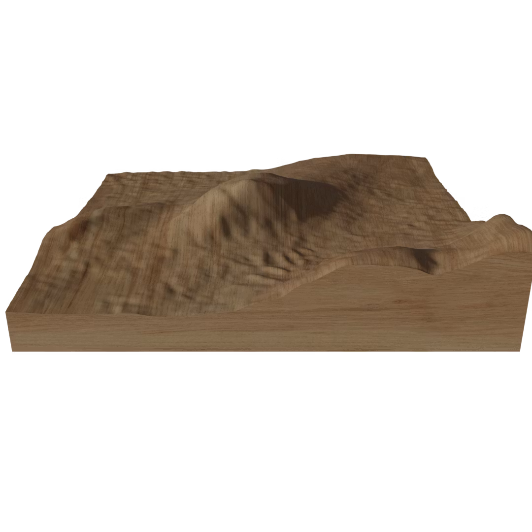 Tredimensionell topografisk karta i trä över Idre Fjäll.
