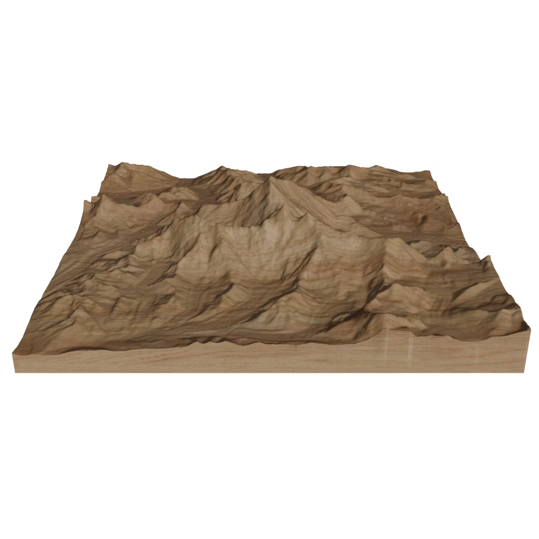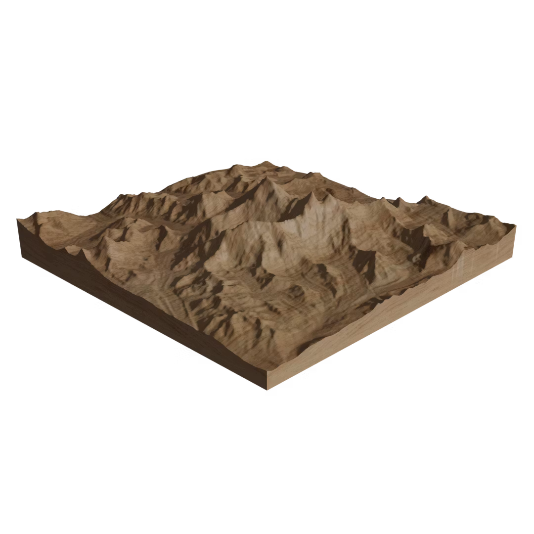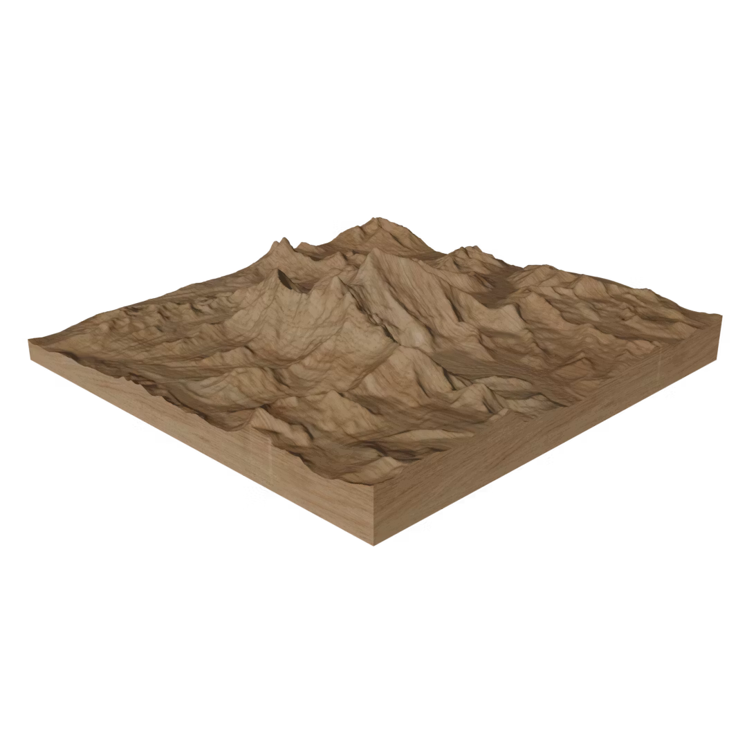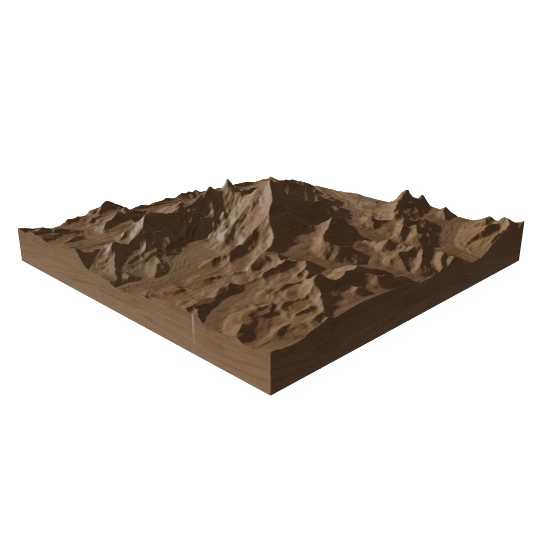 Tredimensionell topografisk karta i trä över Mt Everest.