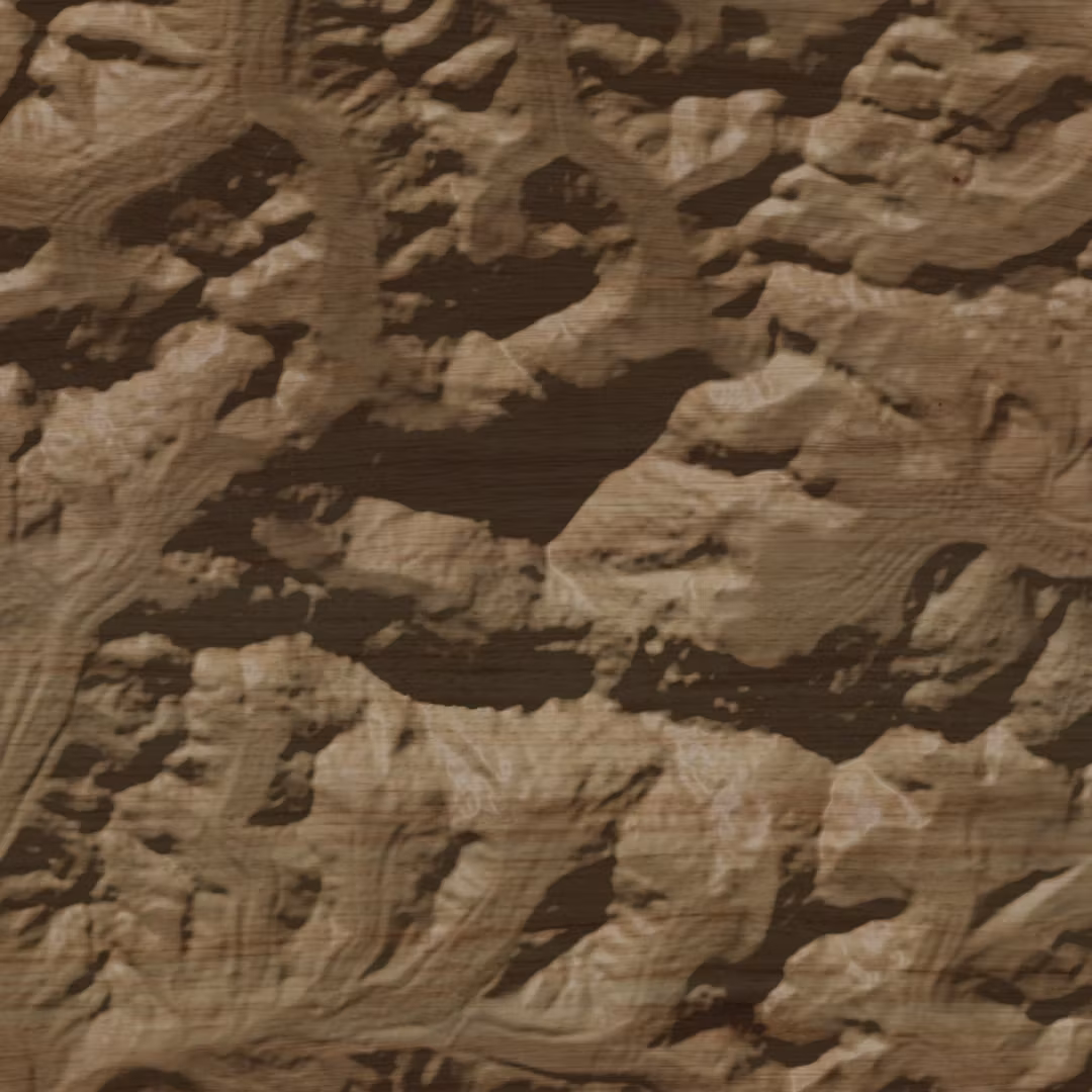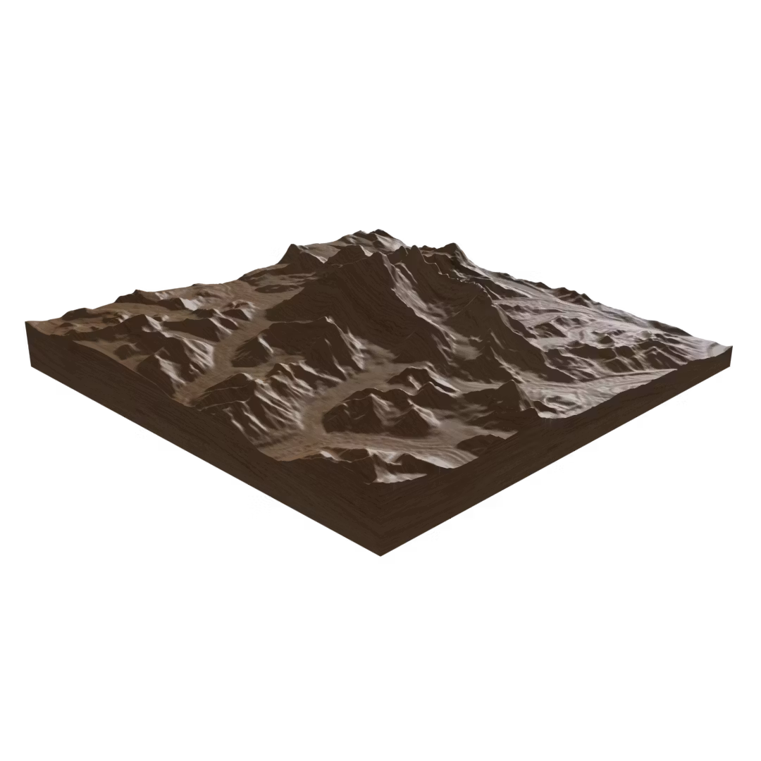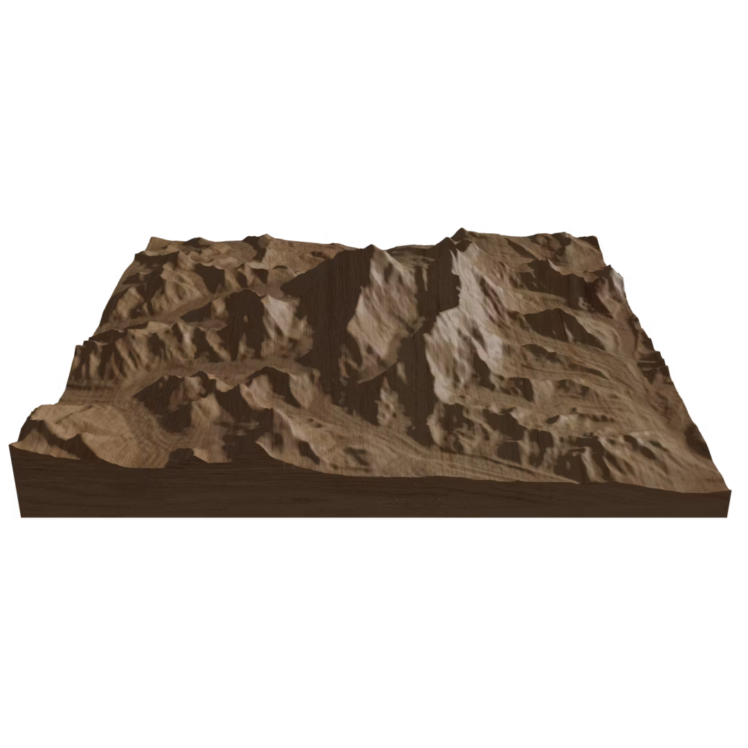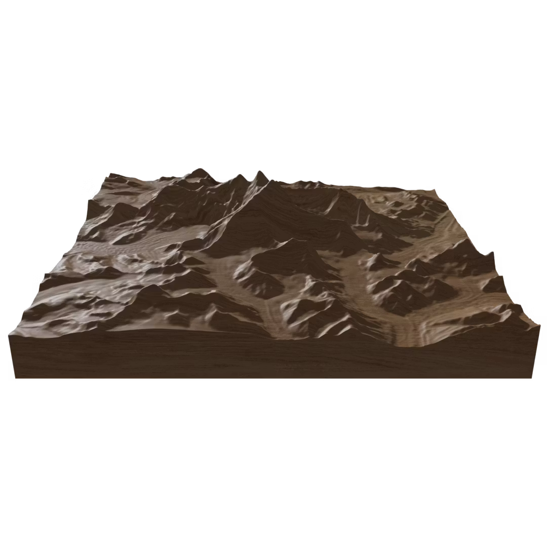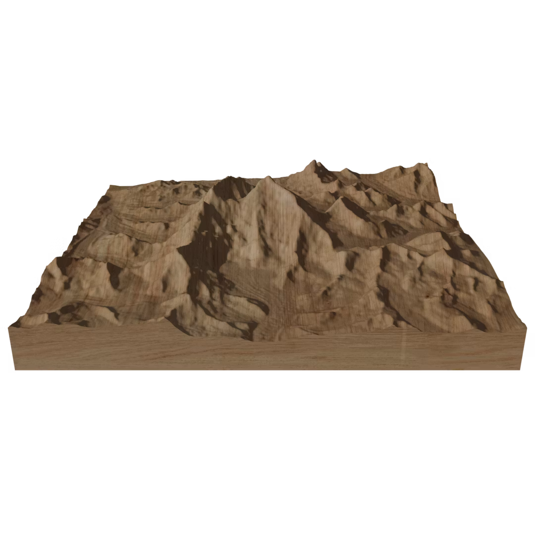 Tredimensionell topografisk karta i trä över Mt Everest.